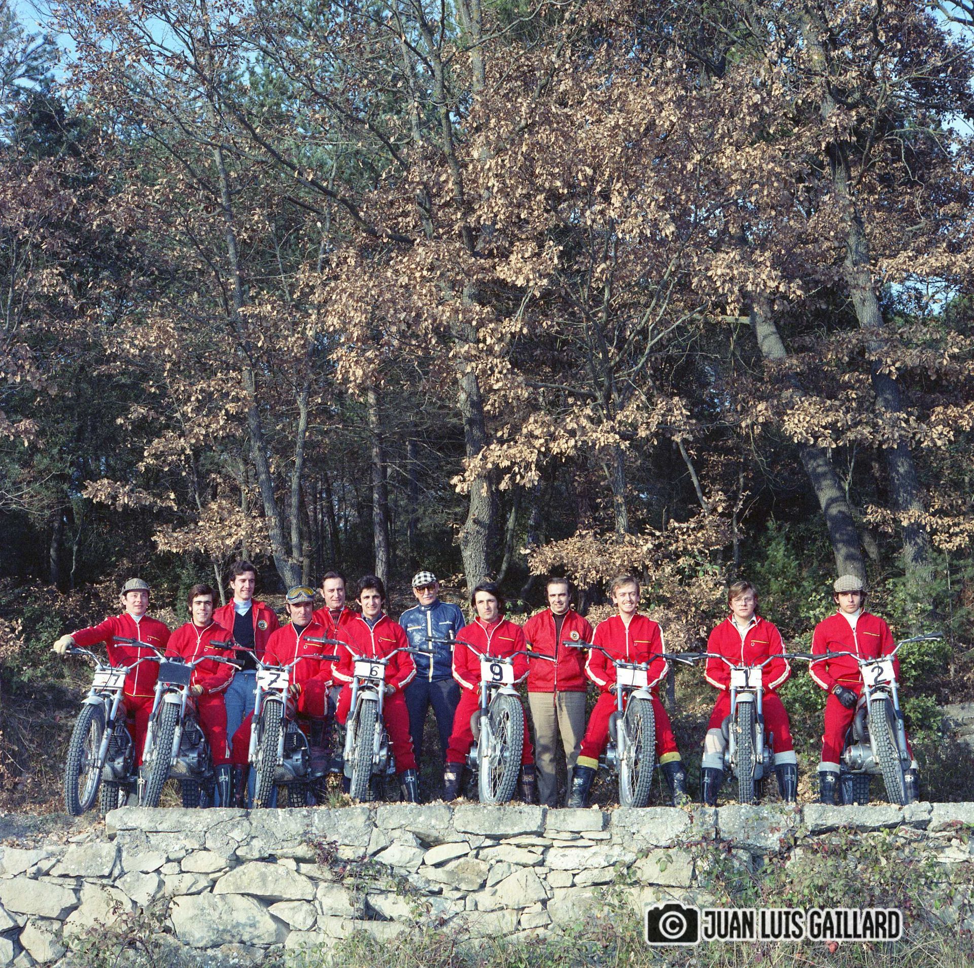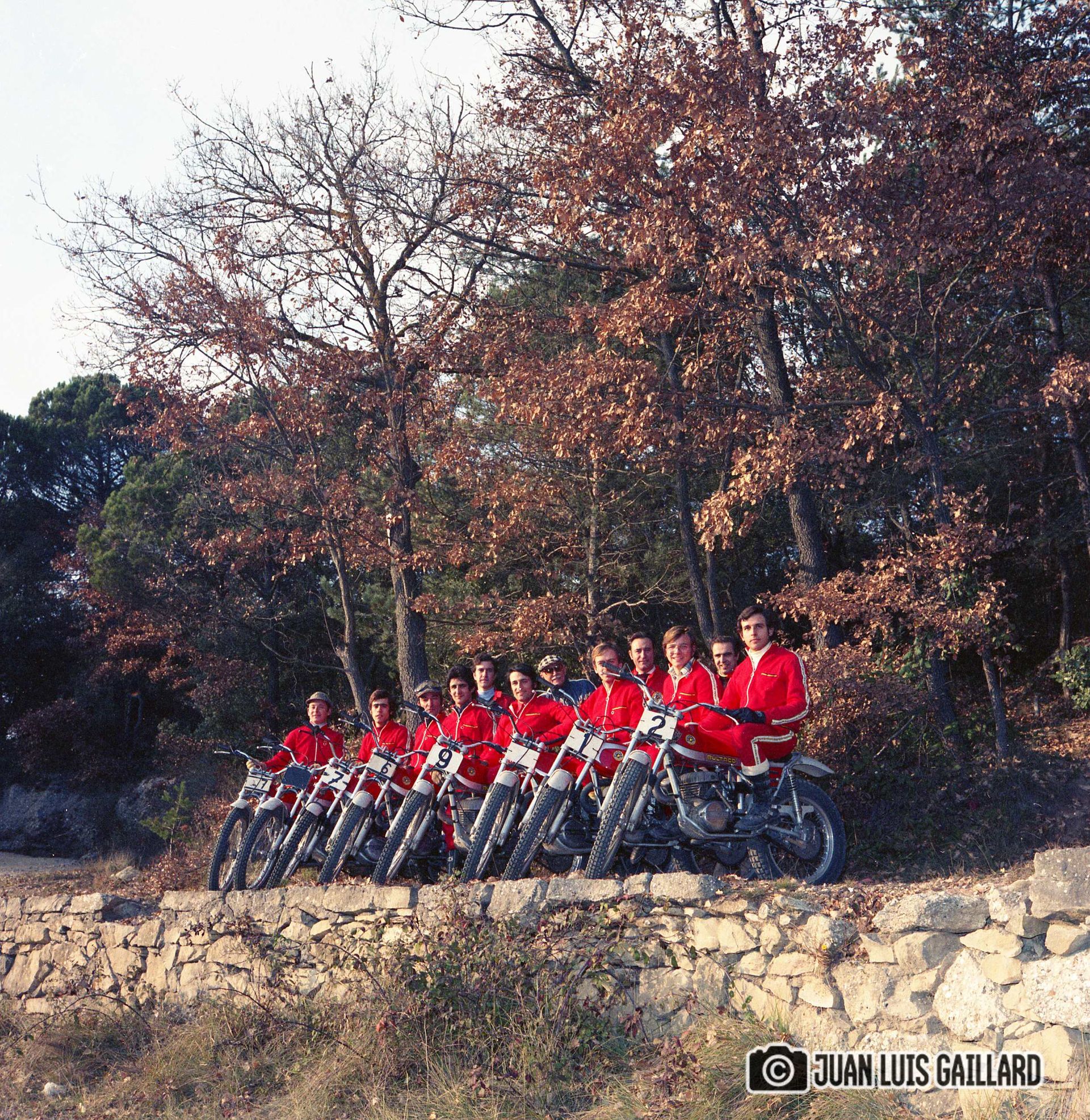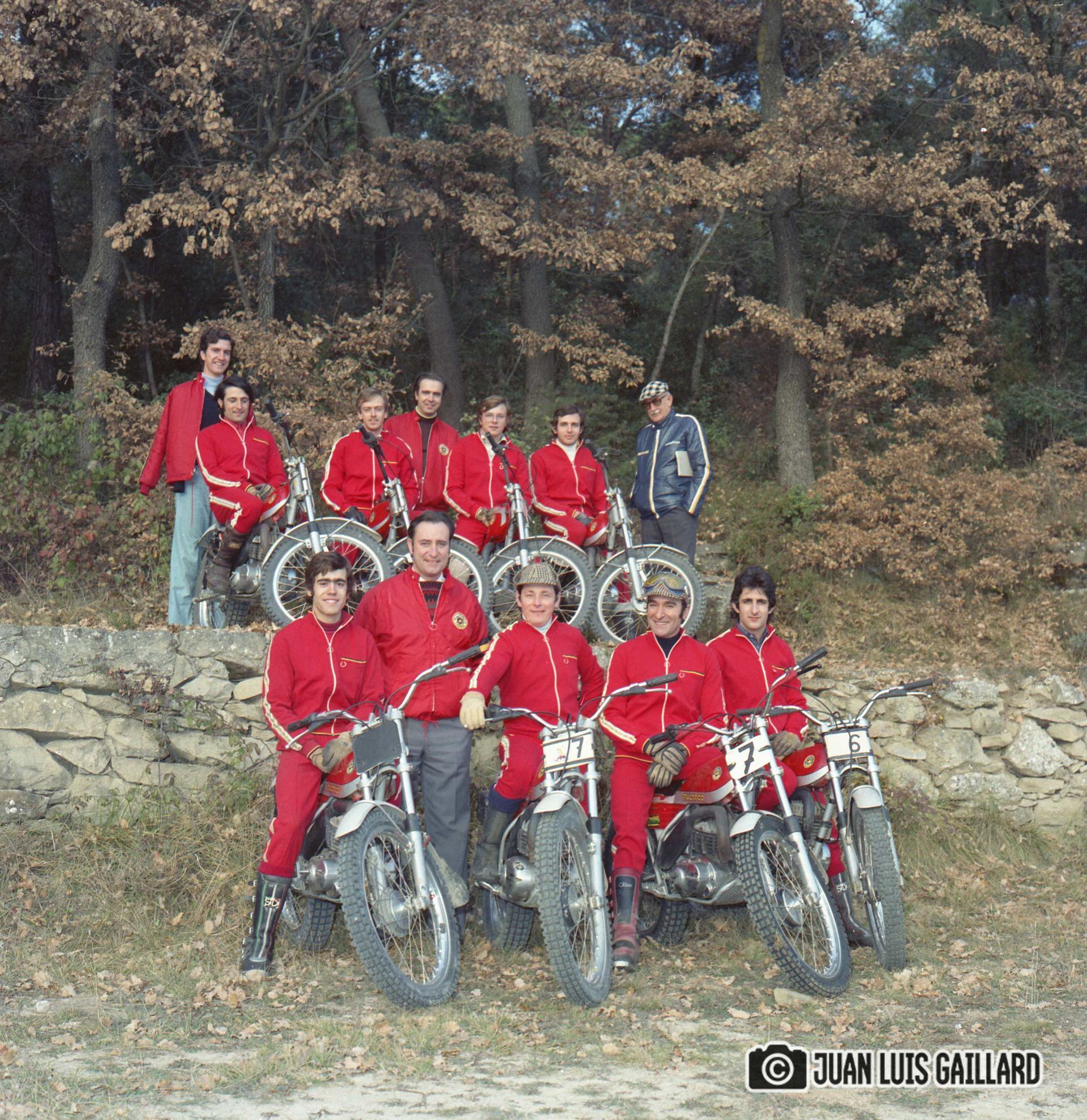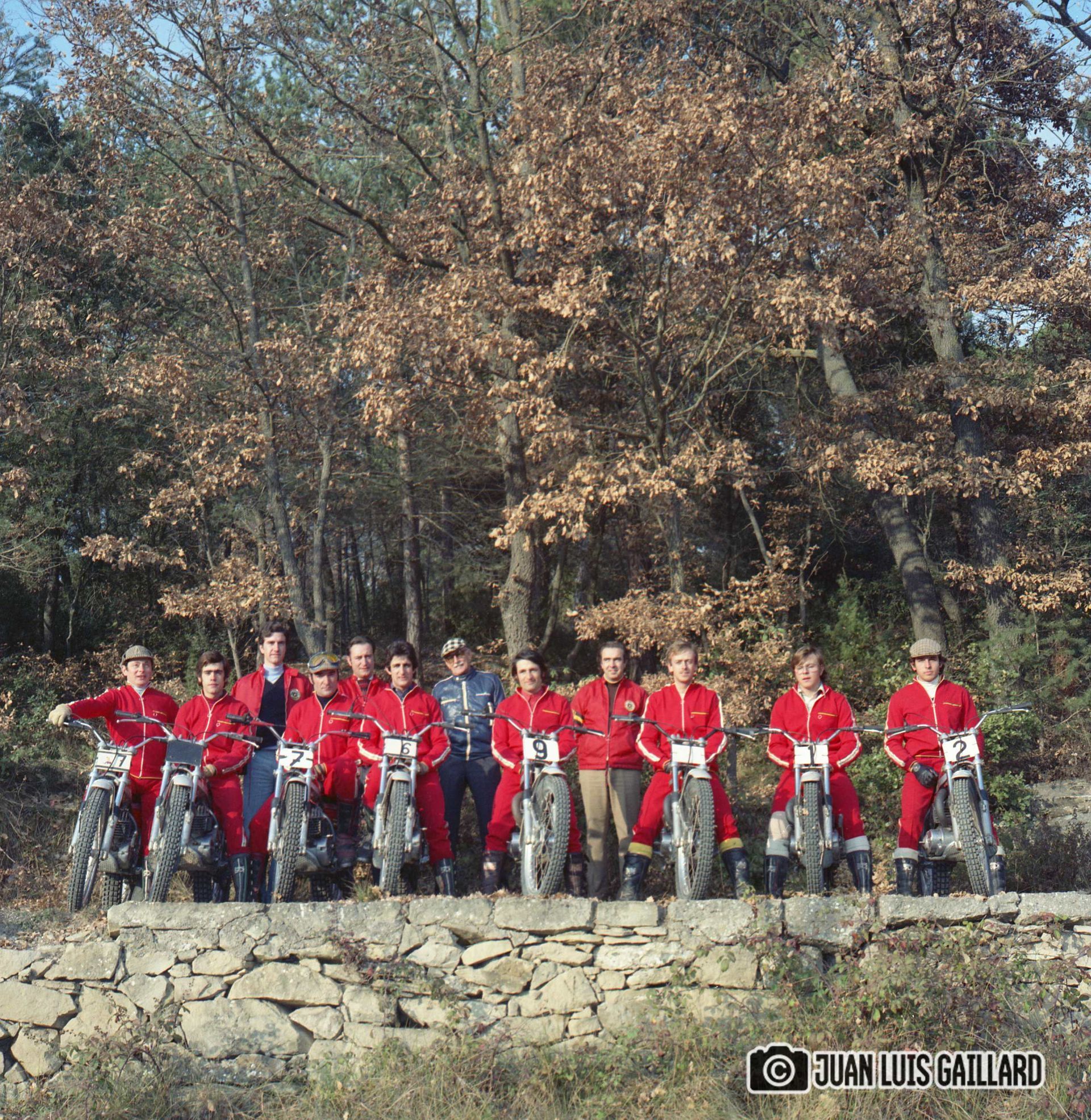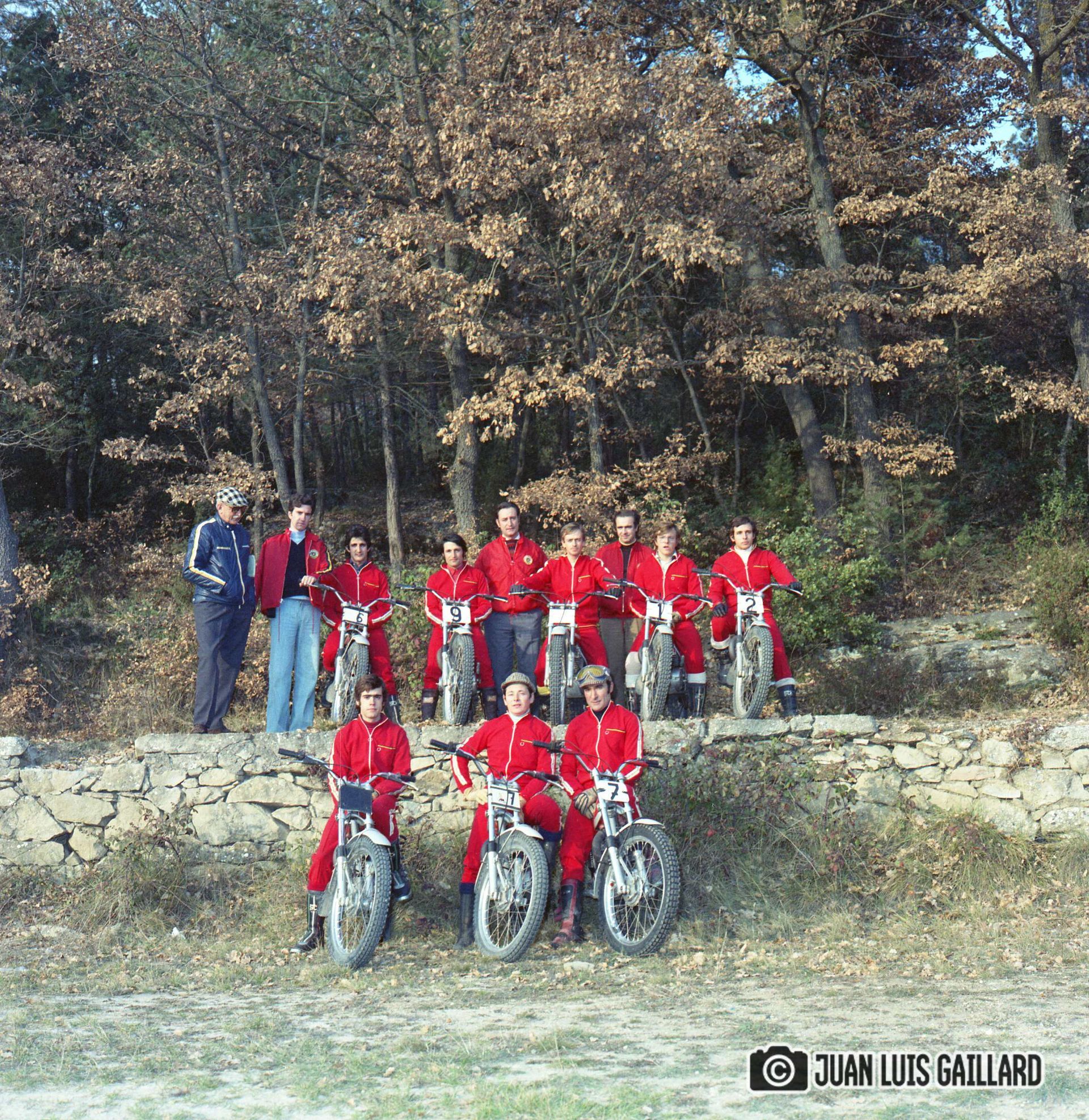 Periódicamente, el equipo oficial BULTACO de Trial, se reunía para hacer una sesión fotográfica.