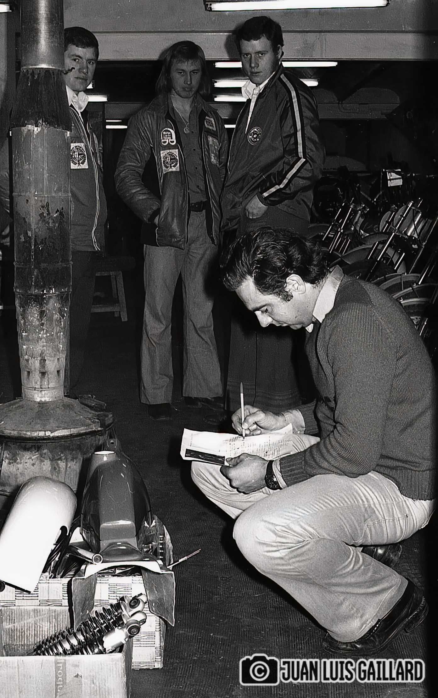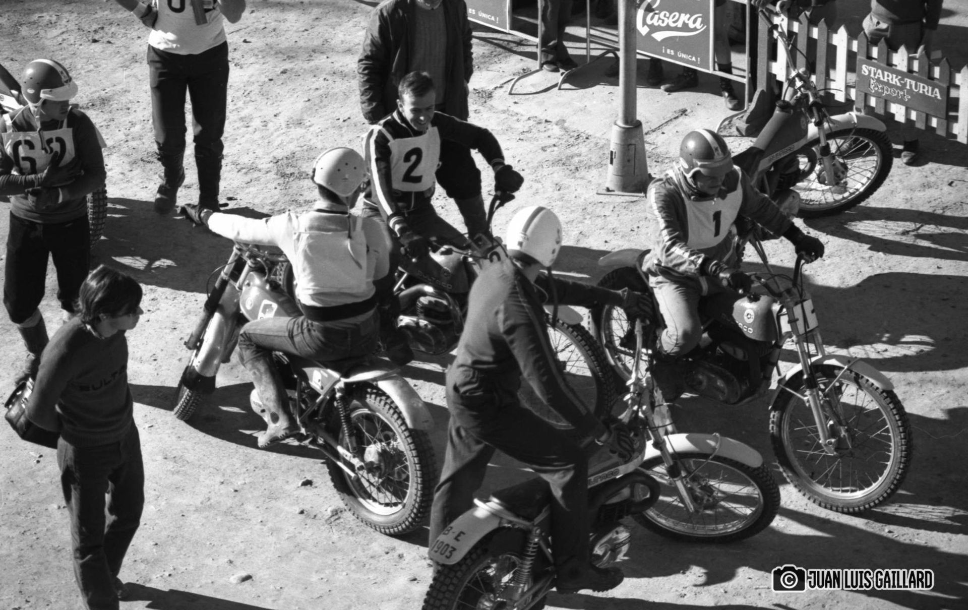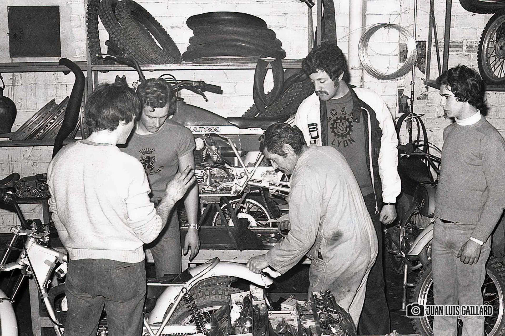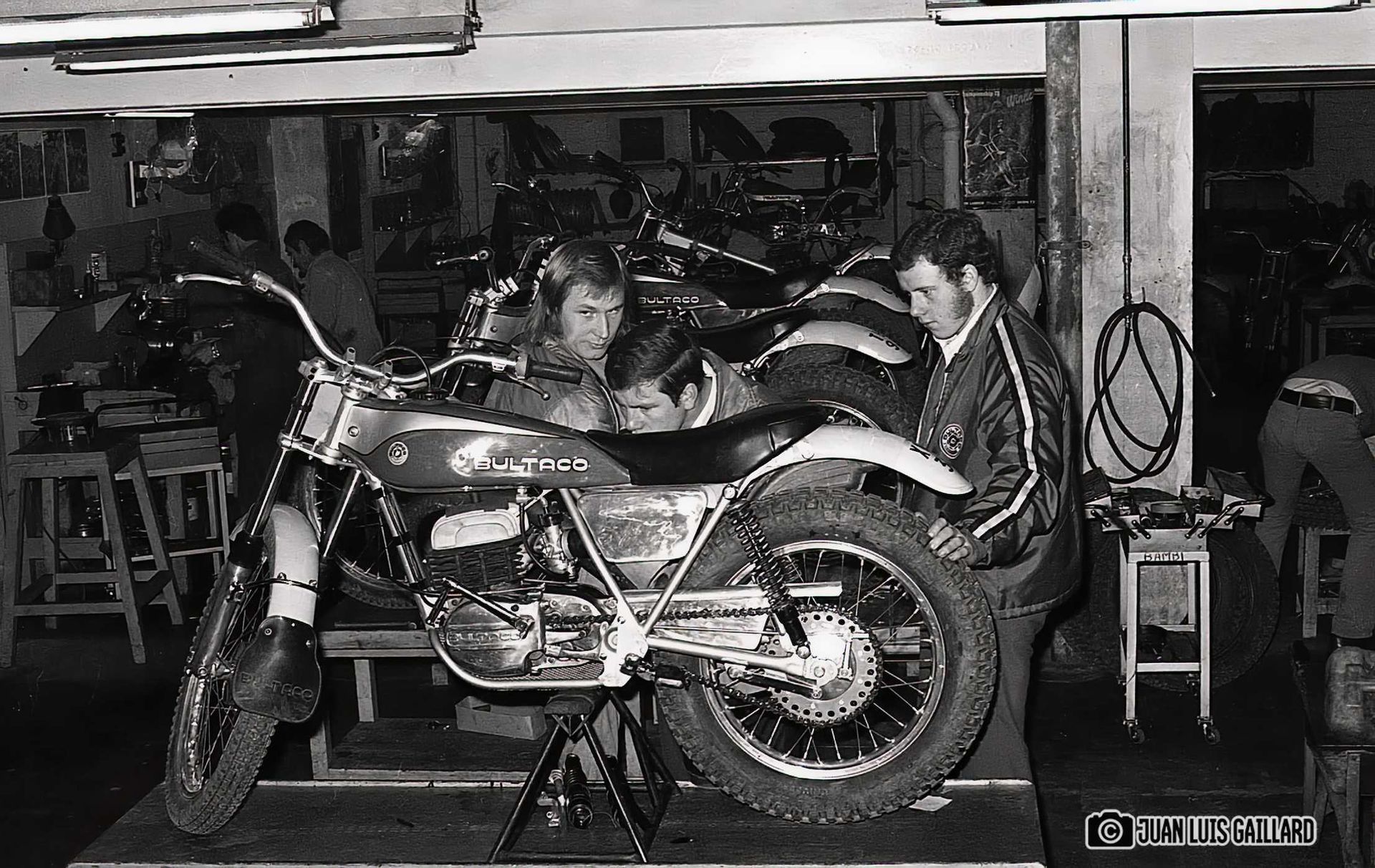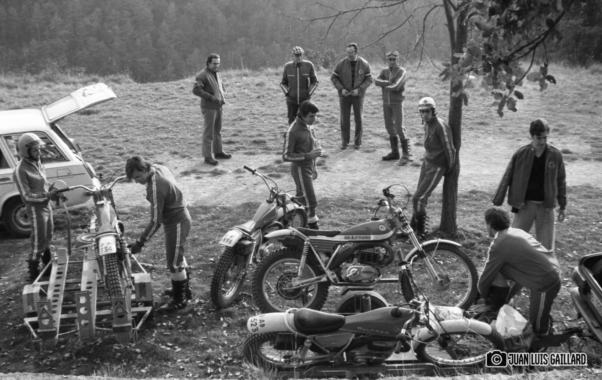 Periódicamente, el equipo oficial BULTACO de Trial, se reunía para hacer una sesión fotográfica.